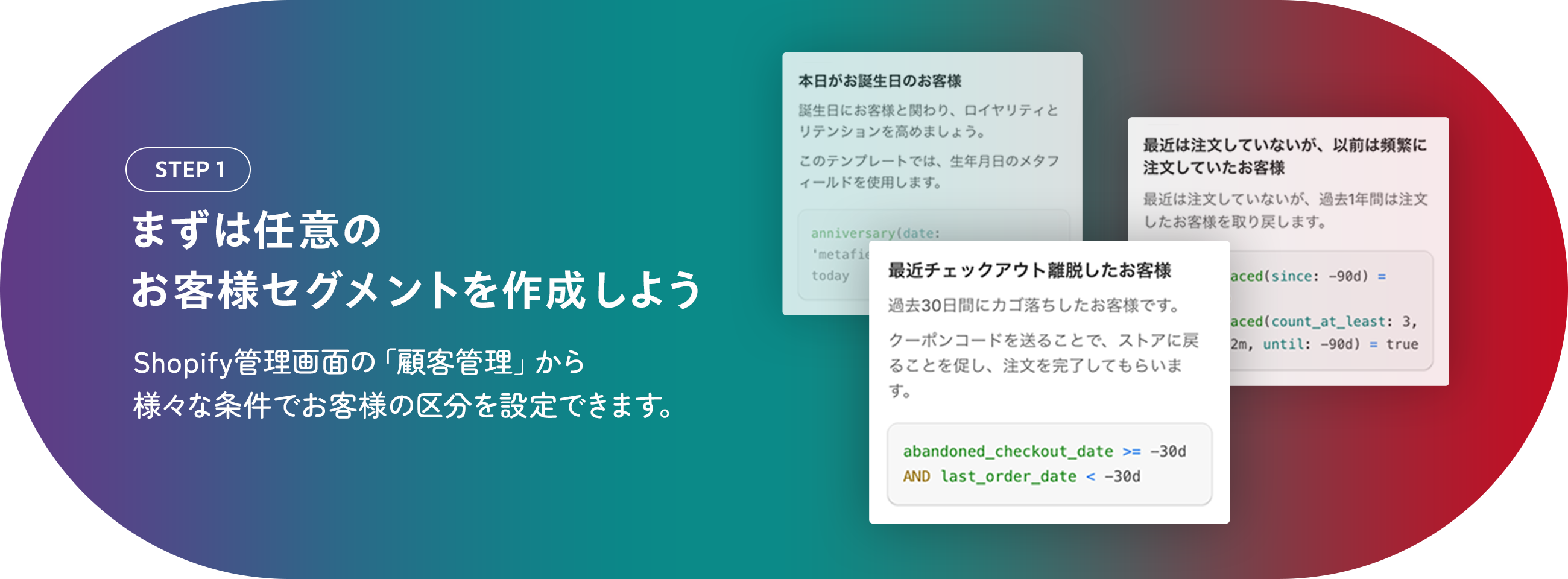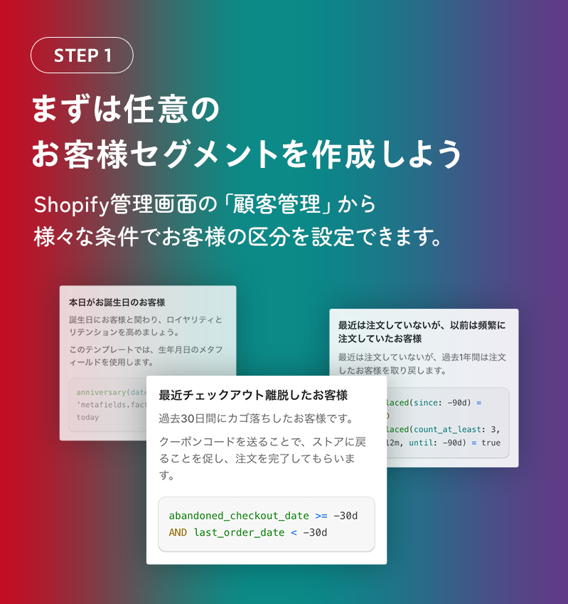 Shopifyの標準機能である「お客様セグメント」を利用して、